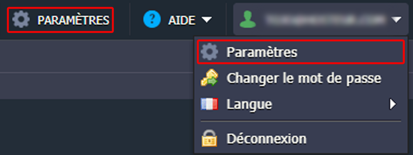 1. Allez à la section Paramètres en cliquant sur le bouton du même nom dans le coin supérieur droit du tableau de bord (ou en cliquant sur votre identifiant > Paramètres).