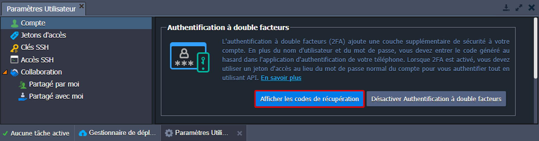 Sur les comptes avec 2FA déjà activée, il est possible de visualiser/régénérer les codes de récupération :