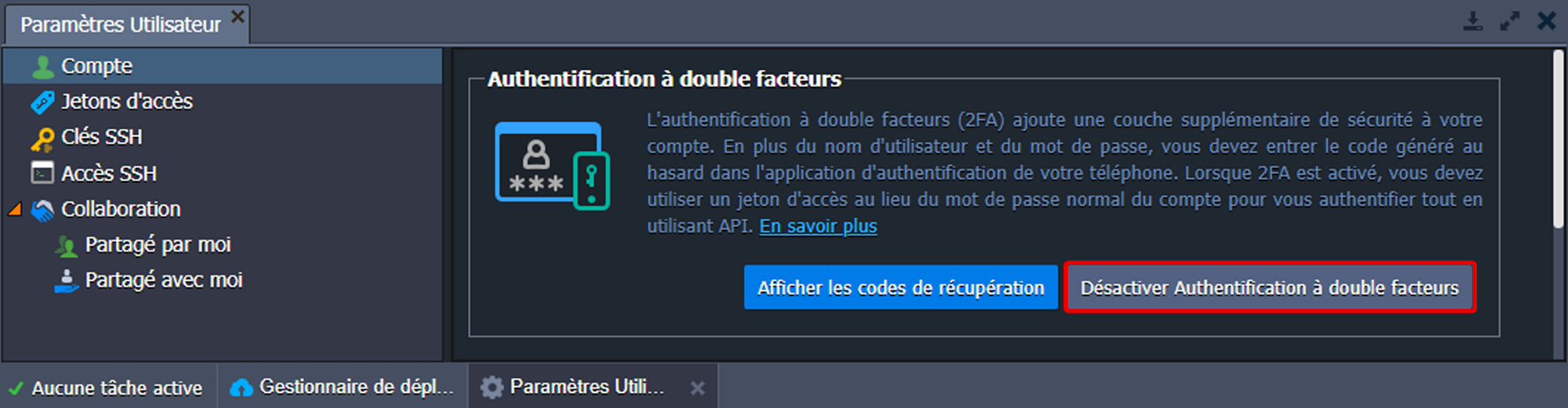Si vous avez besoin de désactiver la 2FA pour votre compte, suivez les étapes suivantes :