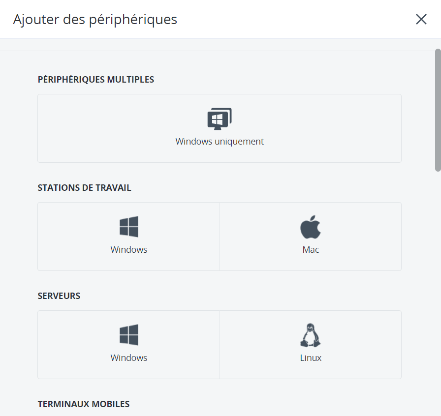Suivez ensuite les instructions pour installer votre agent de cyber protection.