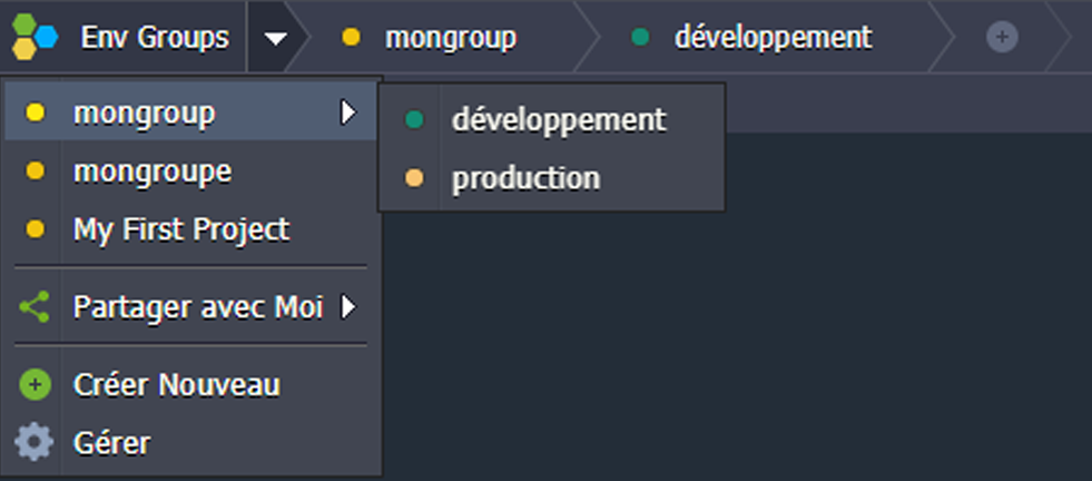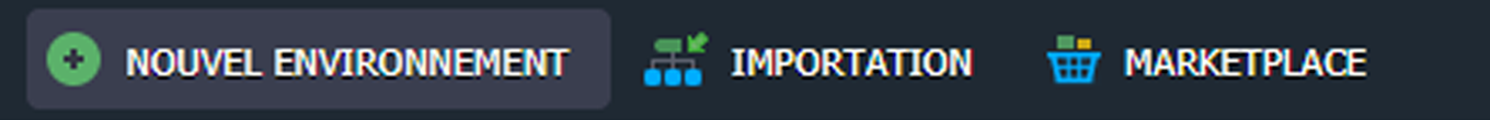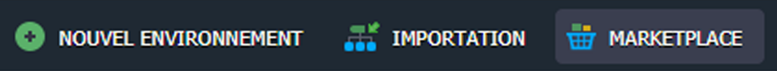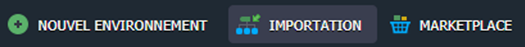 A côté de l'option Nouvel environnement, vous trouverez le bouton Importer. Il traite le fichier .json, .jps, .cs, .yml, ou .yaml téléchargé pour créer un nouvel environnement (ou modifier celui qui existe déjà avec un add-on) selon les paramètres, déclarés à l'intérieur.