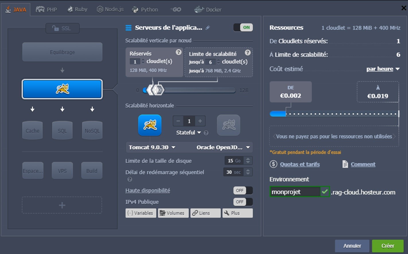 Les possibilités complètes de cette fenêtre sont décrites dans l'article Configuration de l'environnement.  https://www.hosteur.com/ressources/aide?page=ragnarokkr-configuration-de-lenvironnement