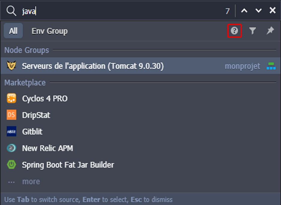 •    Source de recherche (soit le compte entier, soit le groupe d'environnement actuel)