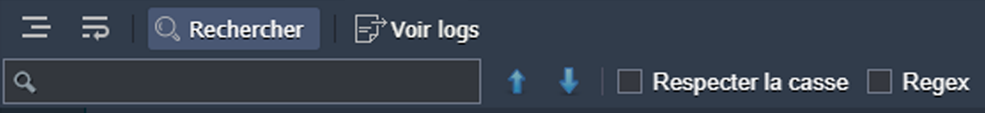 Rechercher : permet de trouver facilement les informations nécessaires, grâce aux options de recherche supplémentaires Respecter la casse et Regex