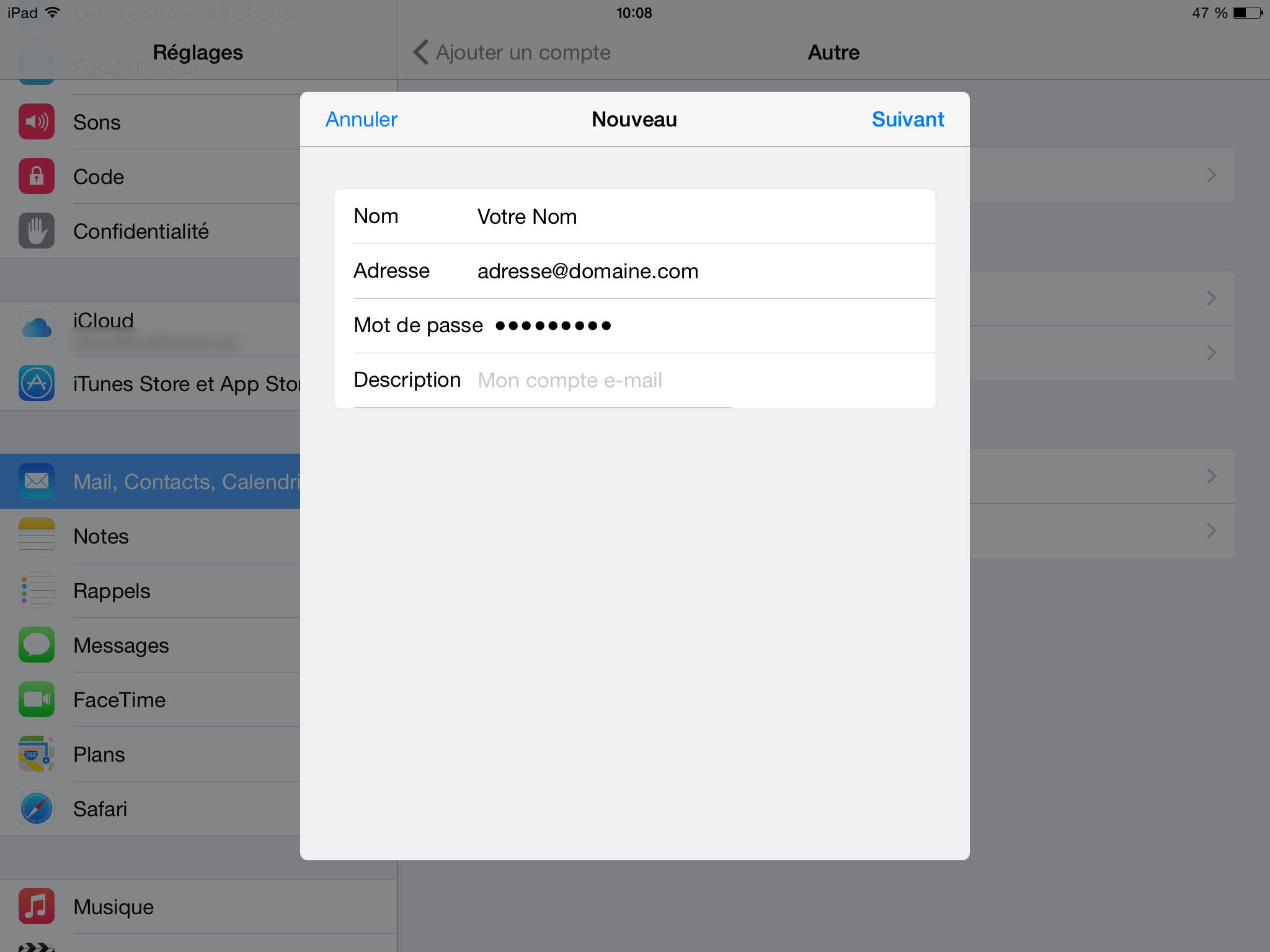 6- Cliquez sur "suivant", si les informations entrées sont correctes, votre compte de messagerie sera